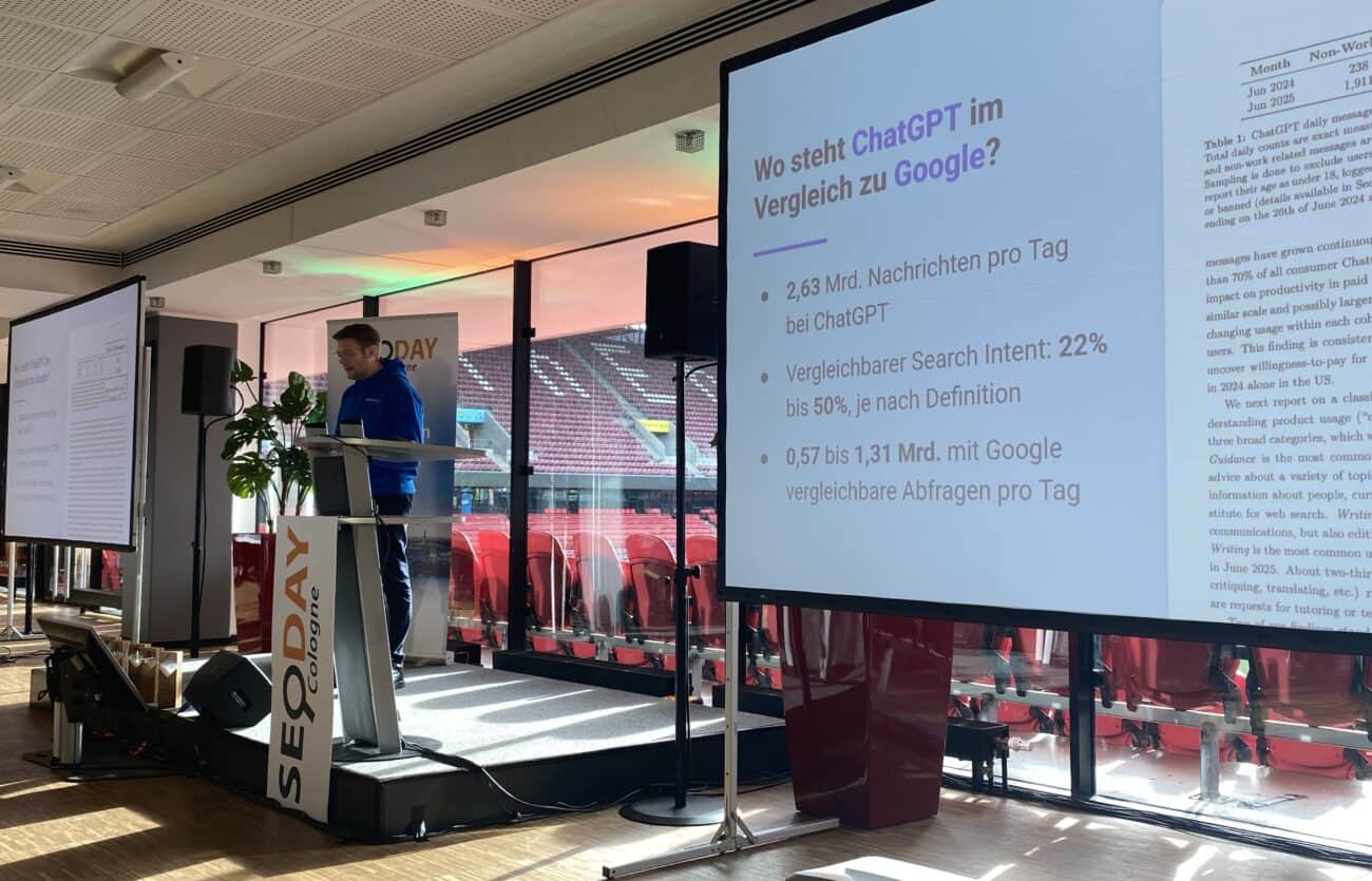 Am 6. November 2025 fand wieder der jährliche SEO-Day im RheinEnergieSTADION in Köln statt. Ein Event, das für SEOs zu den Highlights des Jahres gehört. Über 700 Leute aus der Branche kamen wieder zusammen, um sich über die neuesten Entwicklungen in der Suchmaschinenoptimierung zu informieren, darüber zu diskutieren und sich untereinander auszutauschen. Die Veranstaltung bot eine spannende Mischung aus Vorträgen, praxisorientierten Sessions und reichlich Gelegenheit zum Netzwerken.